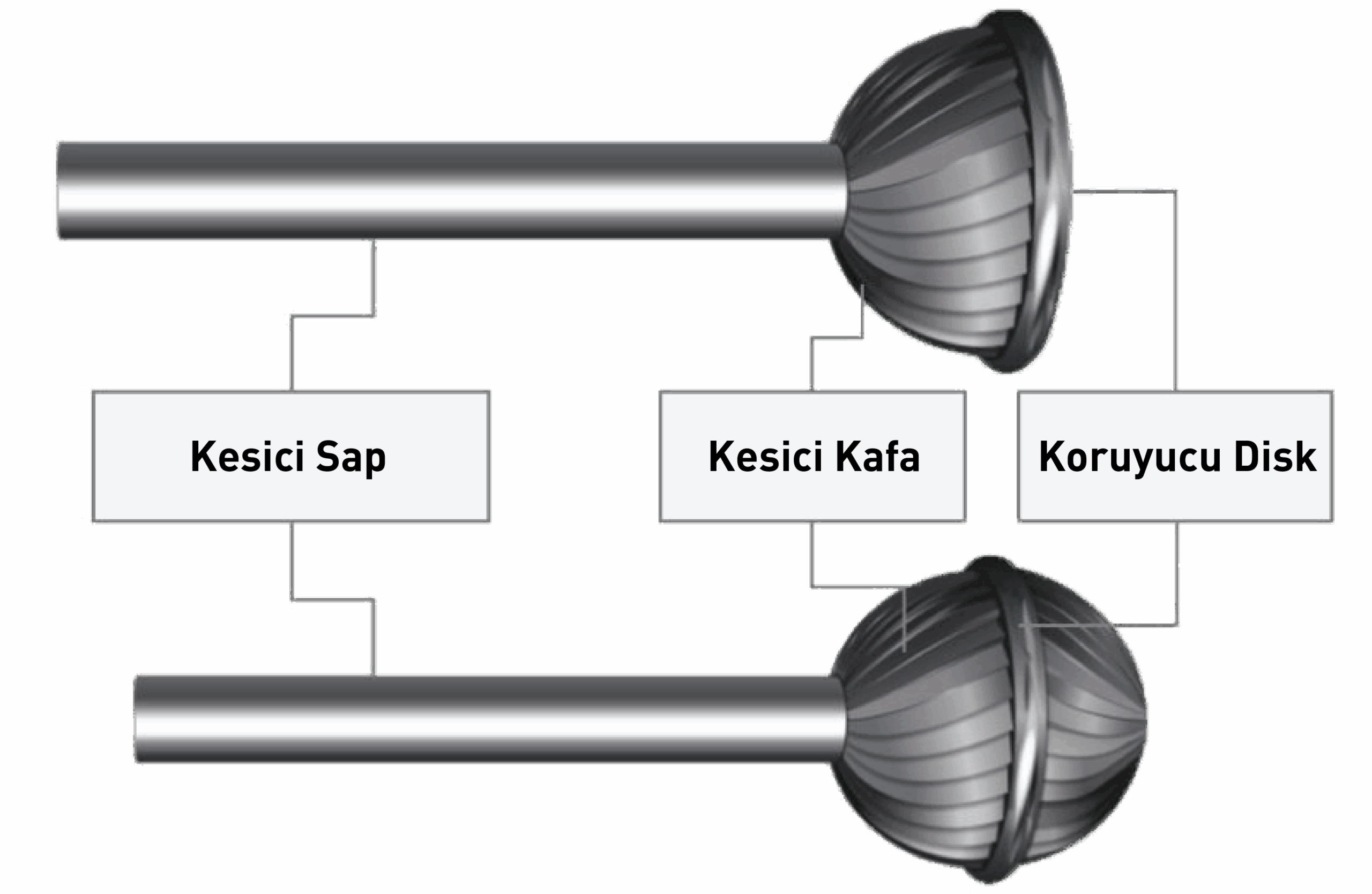 Çapak alma uçlarımız 1.88mm’den 9.52mm’ ye kadar 7 farklı ölçülerde mevcuttur.