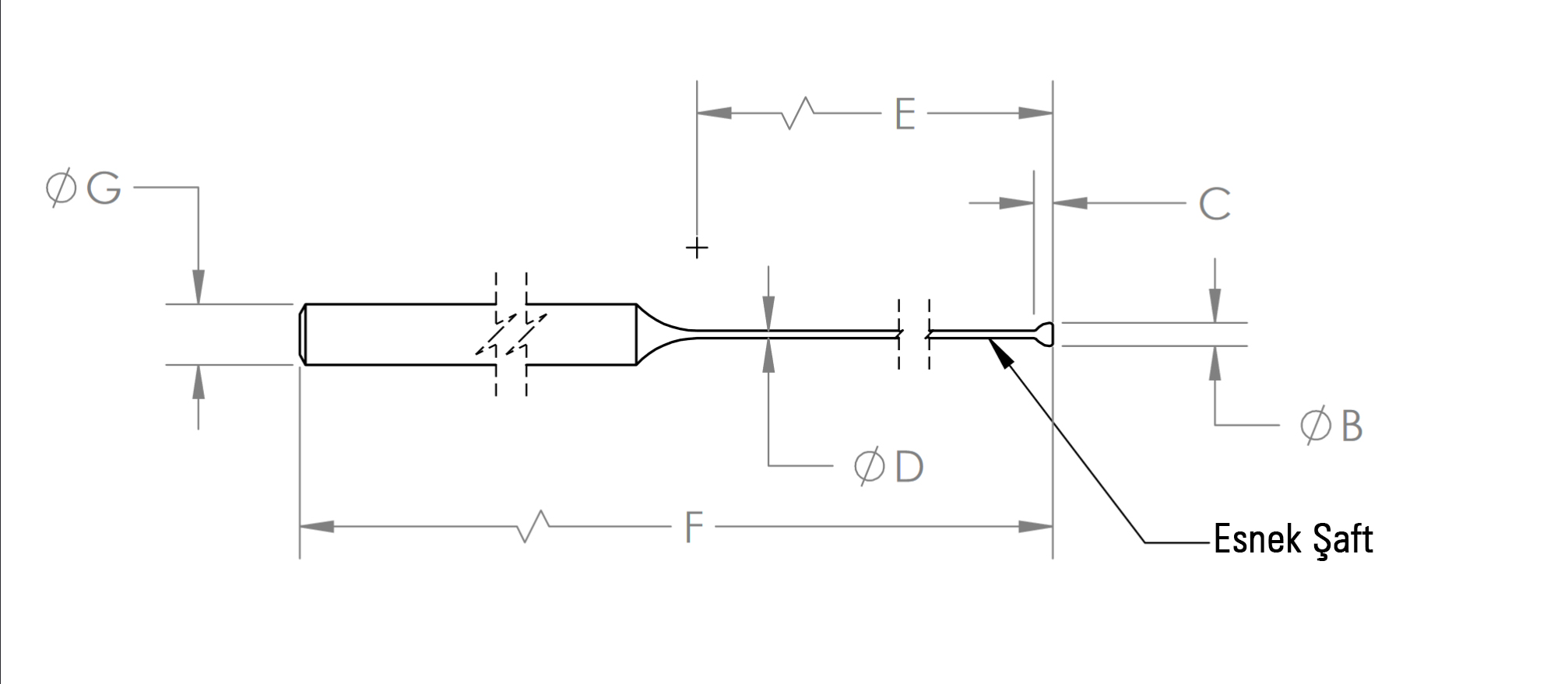 | Nominal Boyut | Kesici Parça No Serisi | Ø A Min. (Yaklaşık) Delik Çapı kesişim açısına göre değişir, mm | Ø B Disk Çapı mm | C Baş Yüksekliği mm | Ø D Sap Çapı mm | E Tedarik Edilen mm | F Uzunluk mm | G Sıkma Ucu mm | ||
