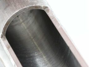 Korozyona ve pasa maruz kalmış parçalarda revizyon islemi maliyetli olabilir. Vakitlice müdahale edilmezse pas, parçayı kullanılamaz hale getirir. Resimde gördüğünüz bu .708” (18mm)’lik karbon çelik av tüfeği namlusunun bakıma ihtiyacı vardı ve FLEX-HONE® ürünümüz oldukça hızlı iş çıkararak yüzeyi kurtardı ve eski haline getirdi.